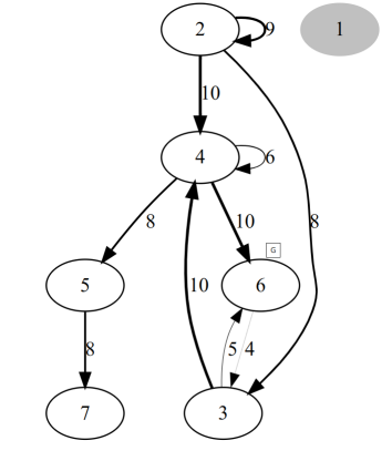 从 3 出发指向了 4,6;边权分别是 10,5。
